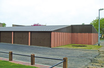 Where extra headroom is required the Lidget Compton HiLiner comes into own. Based on the standard sectional concrete building the HiLiner features galvanised steel cladding mounted on a steel frame on top of the concrete panels to increase the overall height of the building.