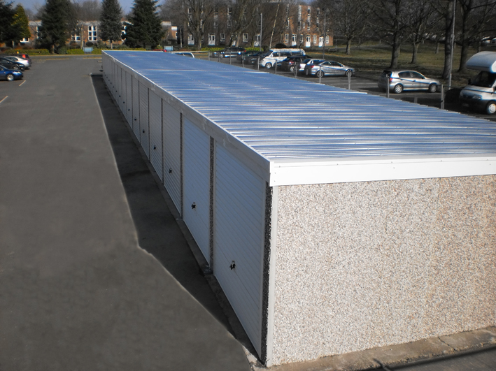 Models range from simple multi unit garages with timber fascias right up to vandal proof units with integrated guttering and secure box profile roof sheets.